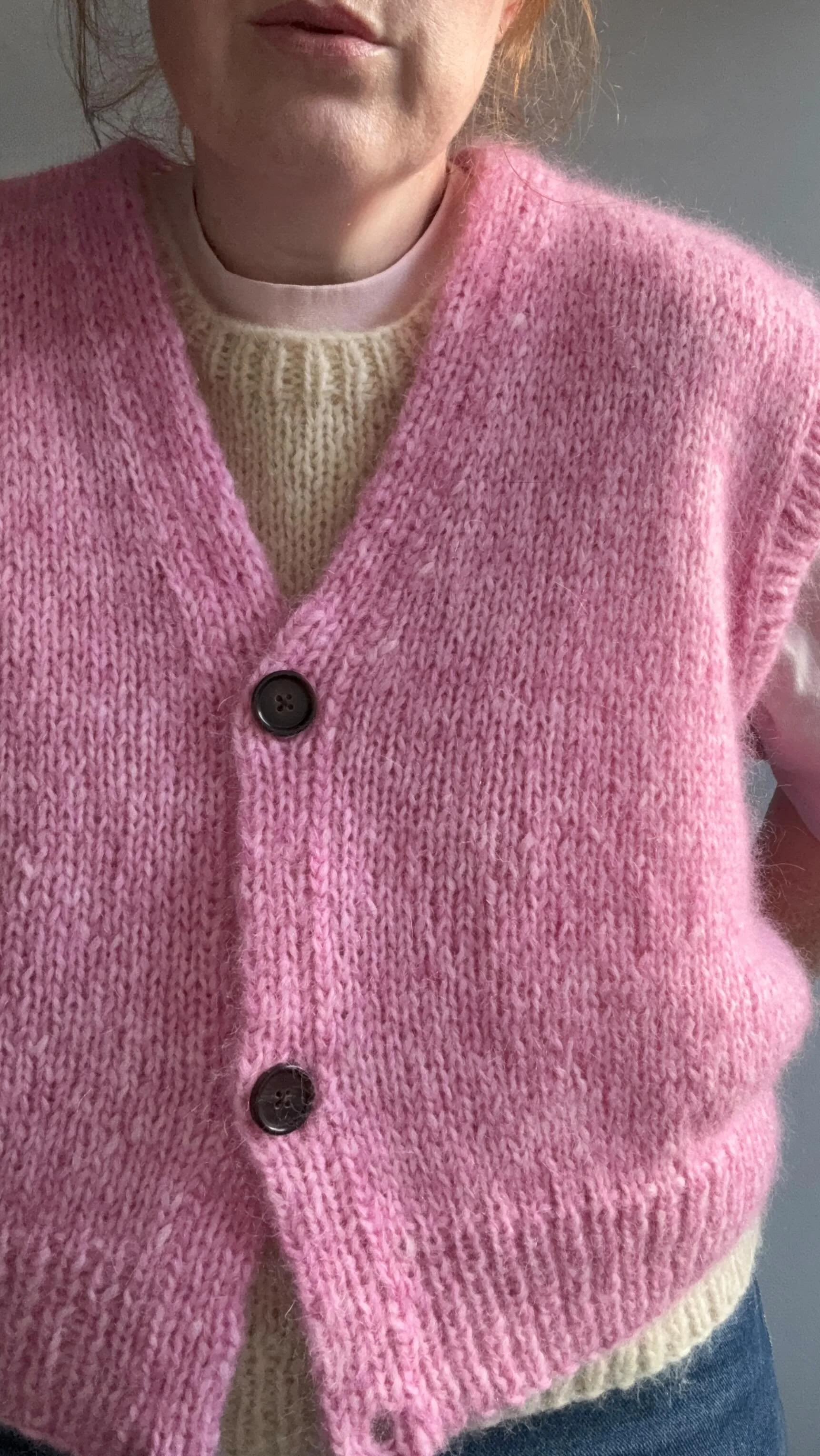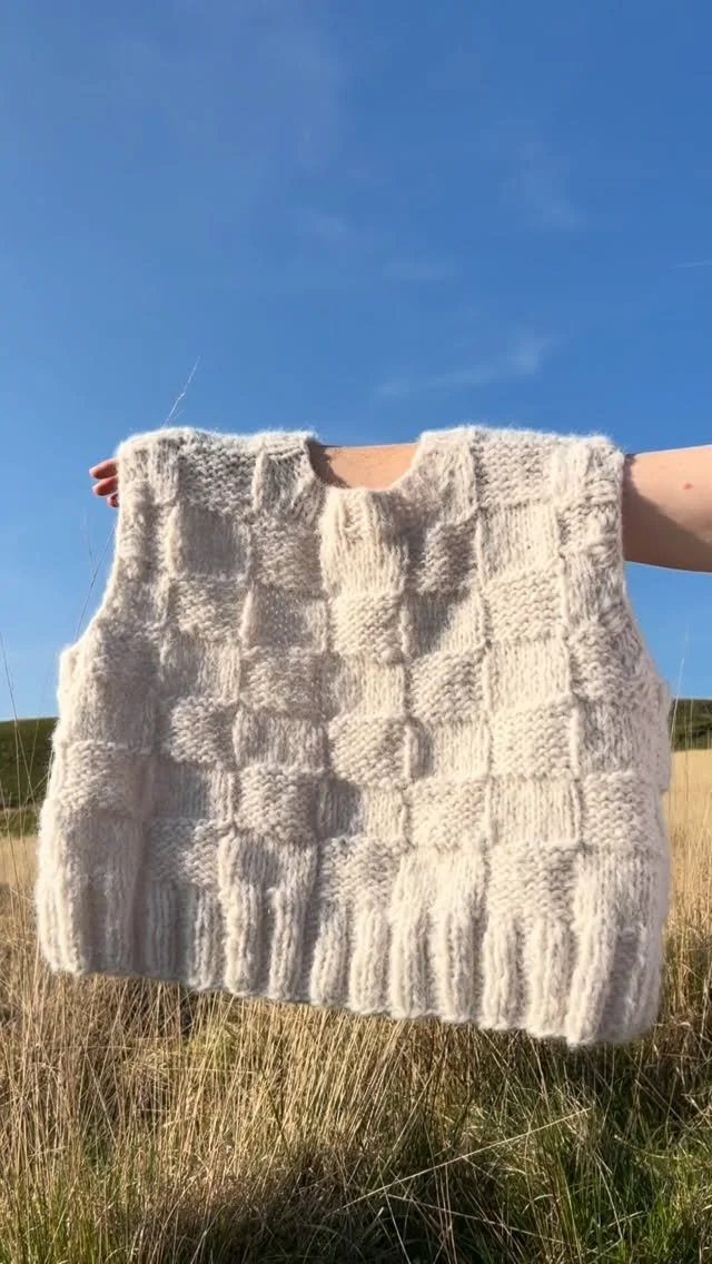 The Marigold Vest, was dreamt up with the vision of being added to a capsule wardrobe. I wanted it to be interchangeable, working casually or smart depending on the outfit build. The wide shoulders & arm coverage allows you to feel confident if you want to wear it on its own but its shape also allows for layering. Knitted from the bottom hem up and seamed at the shoulders. Then finished with a double knitted border complete with button fastening & ribbing on the armhole edge line. I hope you love this piece as much as I do & feel super excited to knit it up!!!